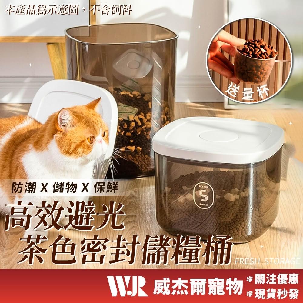 威杰爾寵物高效避光 茶色防潮儲糧桶 寵物飼料桶 按壓儲糧桶 飼料桶 食品密封罐 密封儲物罐 矽膠密封罐 C018