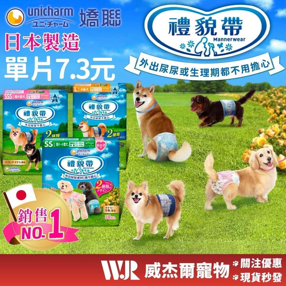 Unicharm Pet 禮貌帶威杰爾 日本嬌聯寵物禮貌帶 (尺寸任選 寵物尿褲 狗尿布 寵物尿布 寵物生理褲) 威杰爾寵物【A071】