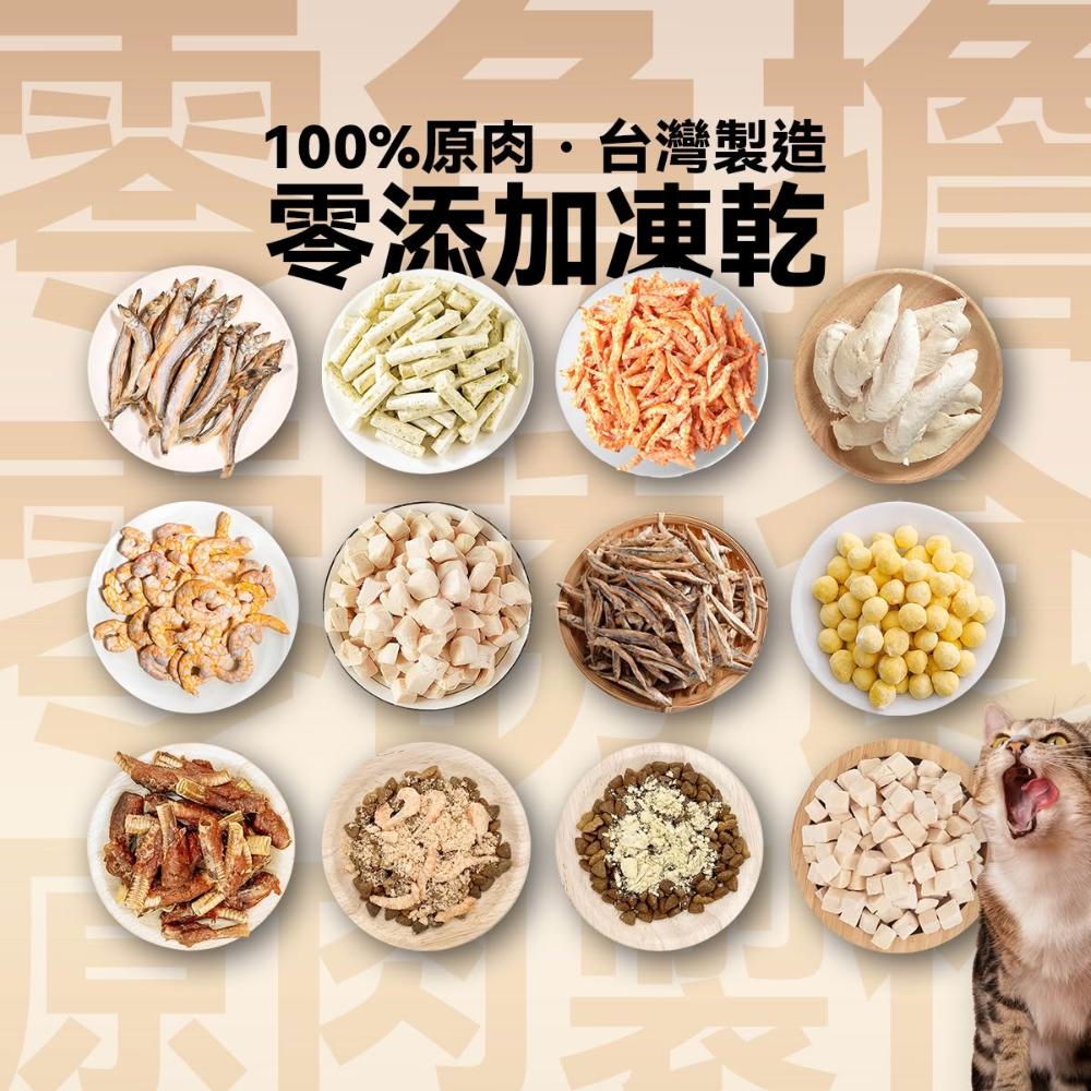 威杰爾寵物零添加寵物凍乾 100%原肉台灣製造 南極磷蝦 干貝 丁香魚 白蝦 鴨脆酥 柳葉魚 鵪鶉蛋黃 雞肉貓草 雞柳條 雞肉丁