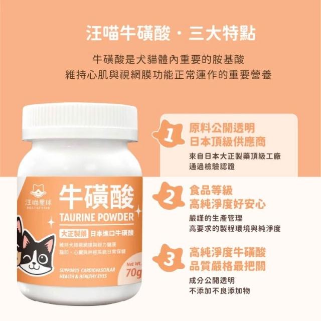 汪喵星球TAURINE 牛磺酸 70g 日本進口 大正製藥 純牛磺酸 膳食纖維 汪喵保健 威杰爾寵物【A009】