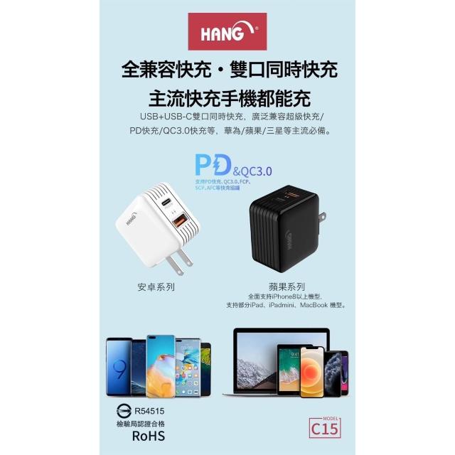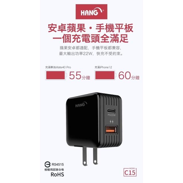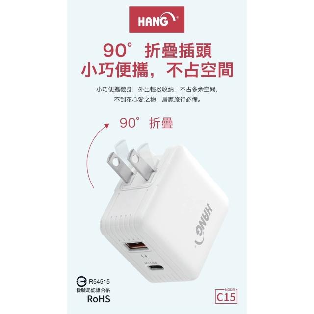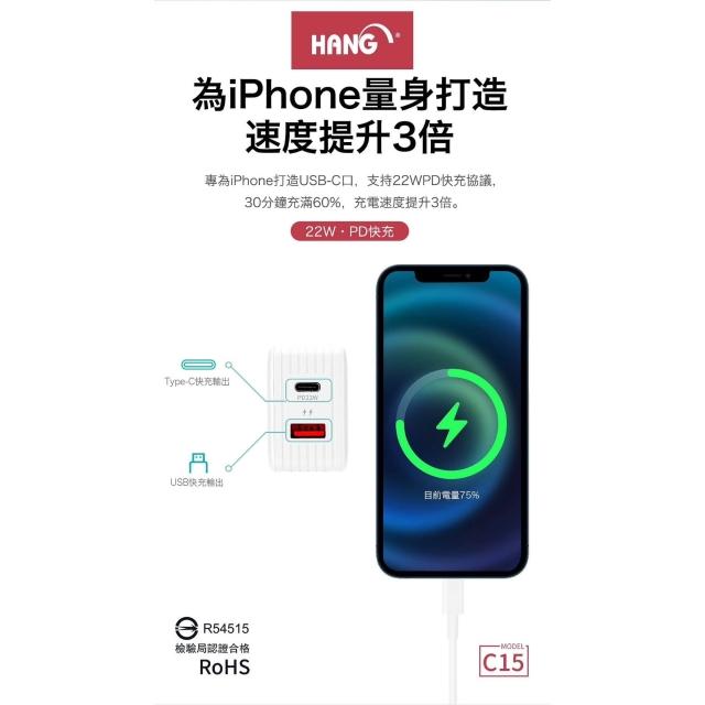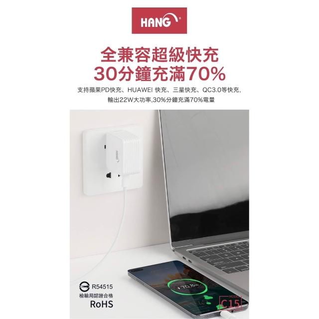 HANG台灣現貨 BSMI認證 HANG C15A PD+QC 快速充電器 22W 充電頭 蘋果三星全兼容 快充 閃充 Type-C 輸出快充頭 旅充頭