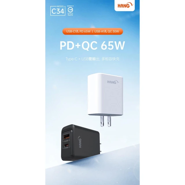 HANG台灣現貨 BSMI認證 HANG C35 充電頭 PD快充頭 1A1C 雙孔充電器 PD 快充 支援 iphone 15