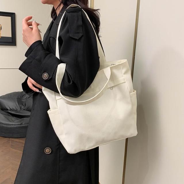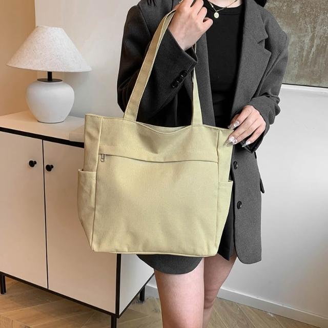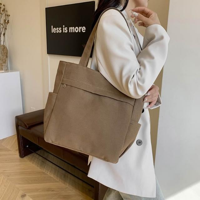 復古純色手提包 帆布單肩包 手提包 休閒 簡約 大容量 托特包 學生上課包 通勤 復古質感 純色 學生