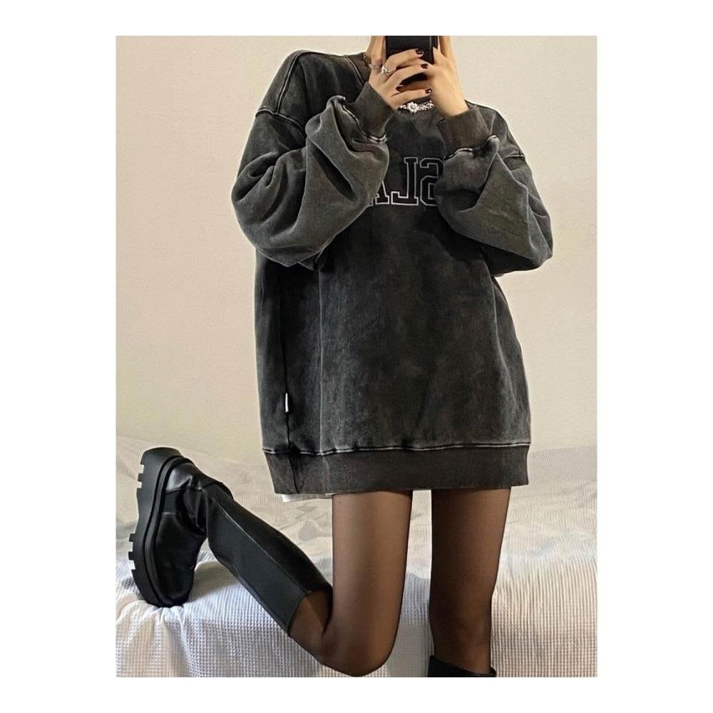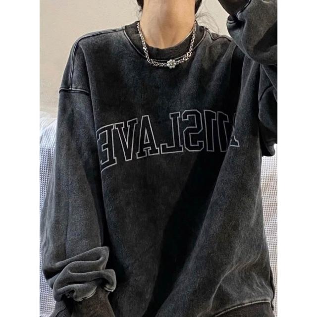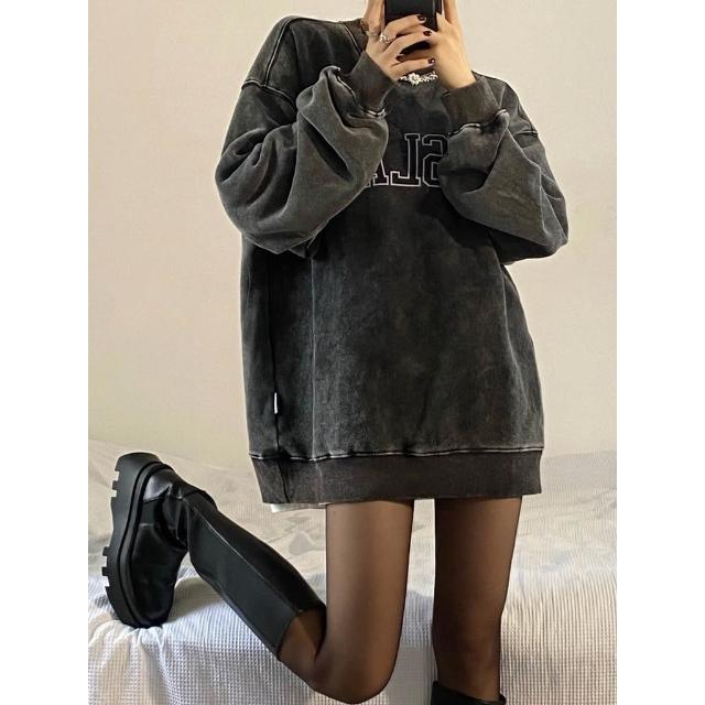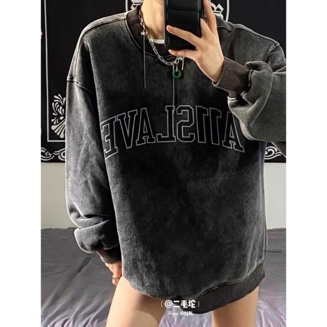 純棉衛衣 大學t 薄衛衣 美式復古 字母印花 長袖上衣 oversi