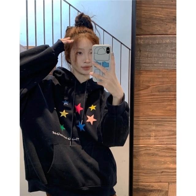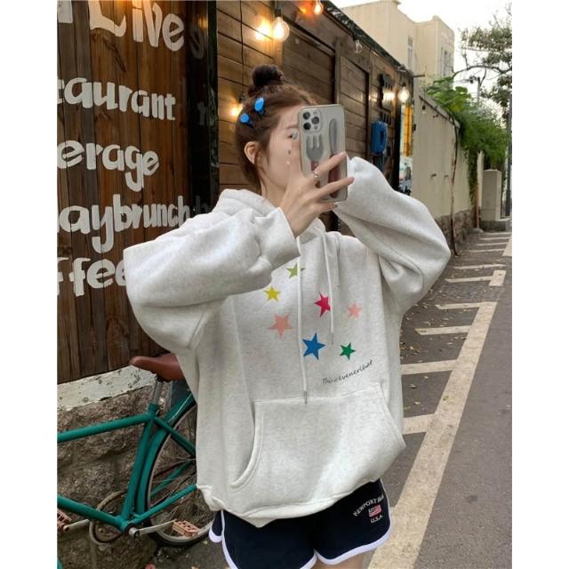 連帽衛衣 大學t 長袖上衣 衣服女 oversize 帽t 潮流衣服 秋