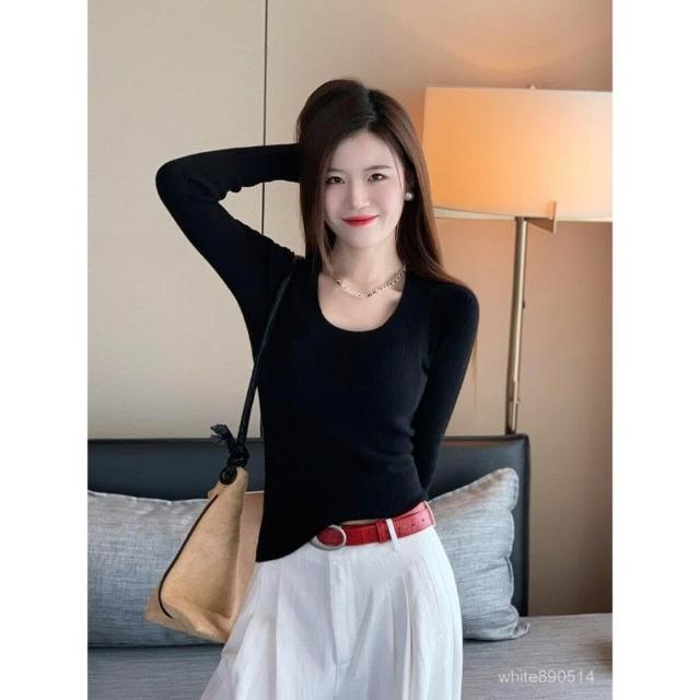 白色打底衫女內搭2025年秋冬新款大圓領針織衫百搭