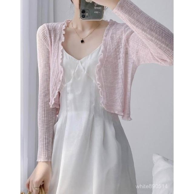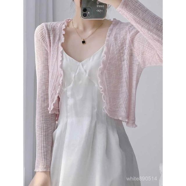 防曬開衫女薄款吊帶裙外搭罩衫夏季針織衫披肩冰絲