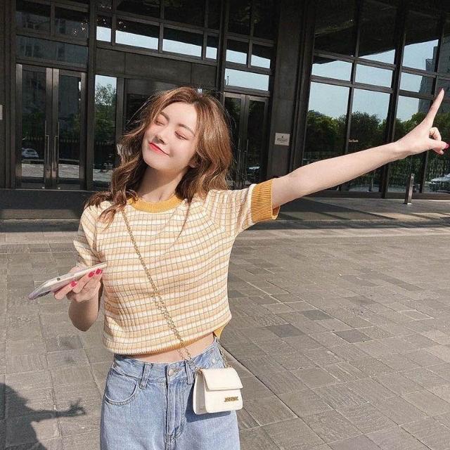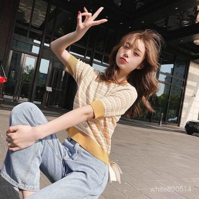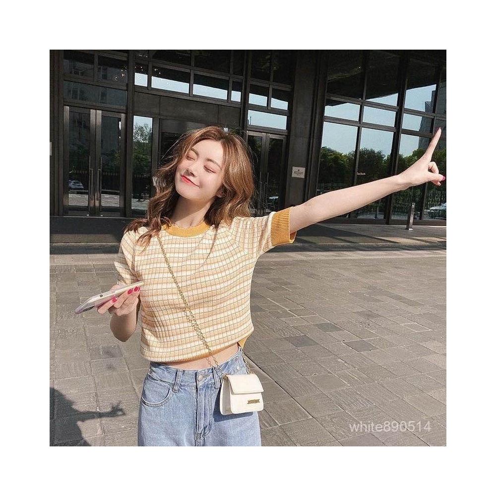 針織方格小衫上衣女2025年夏季時尚流行短款上衣修