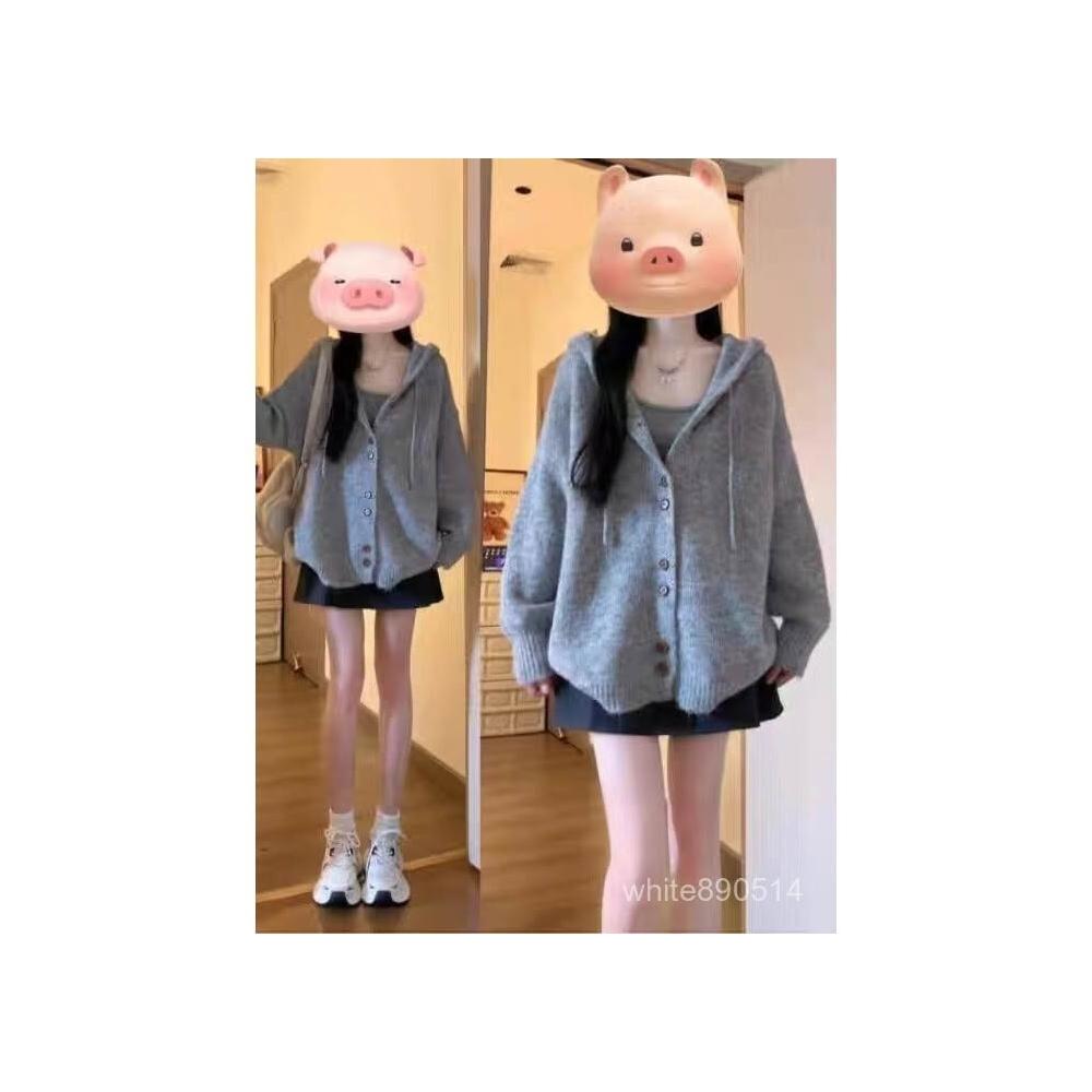 灰色連帽毛衣開衫外套女秋季韓係穿搭寬鬆軟糯慵懶