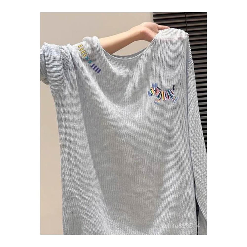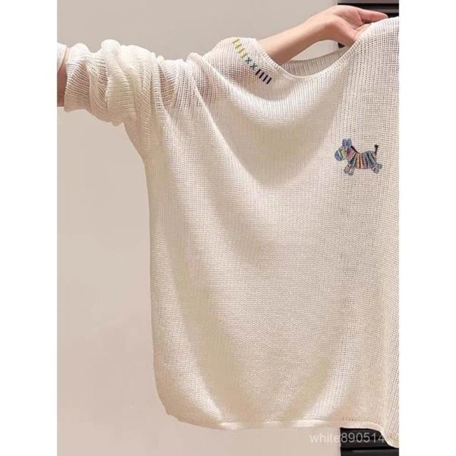 2025夏季新款女裝藍色小馬針織T恤高級感穿搭上衣