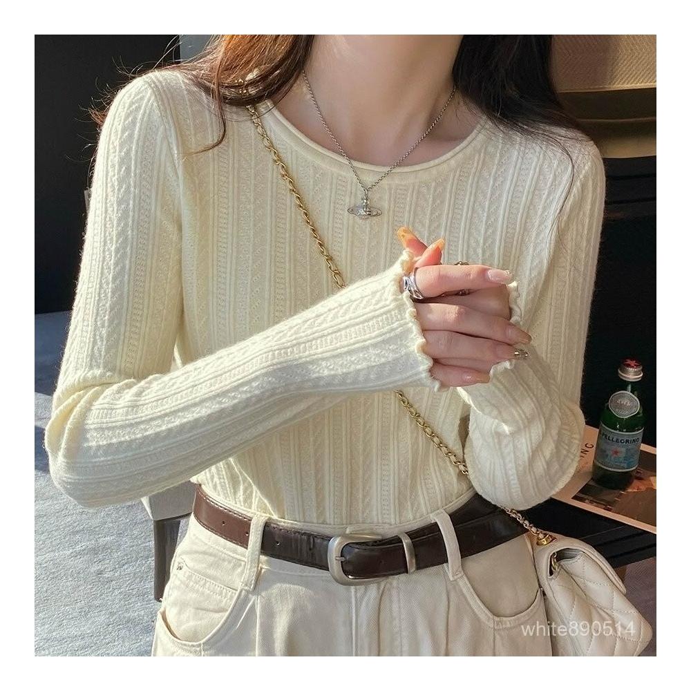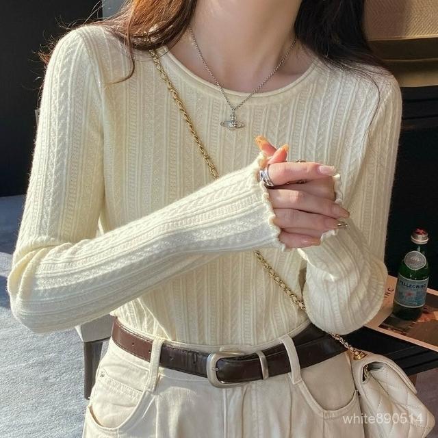 打底衫女2025新款穿搭內搭白色木耳邊針織衫上衣修