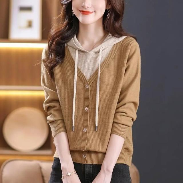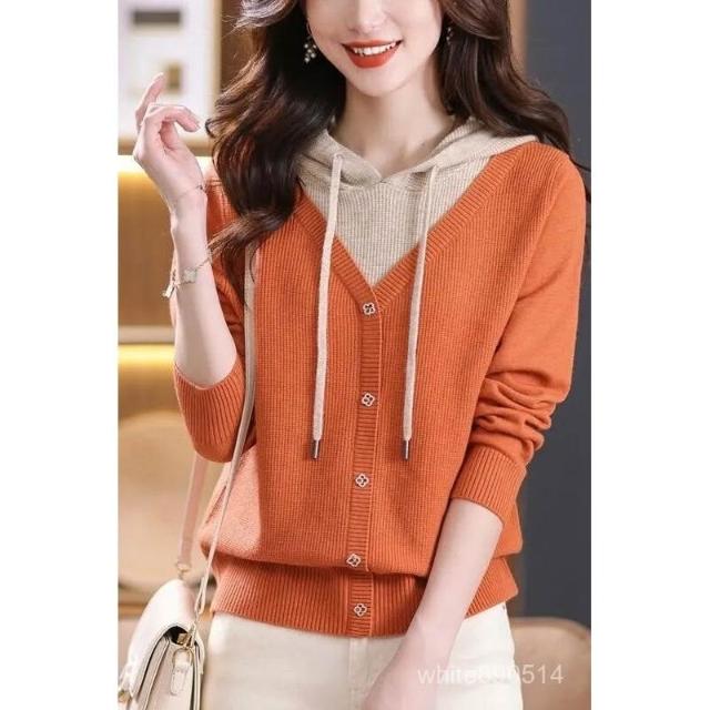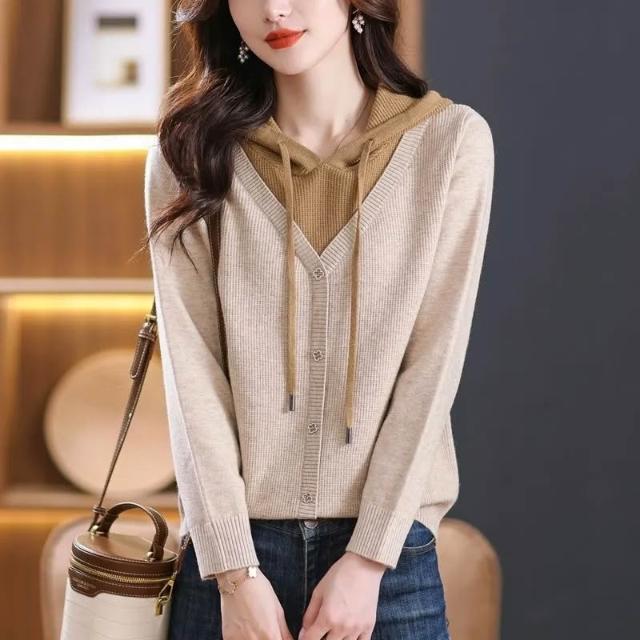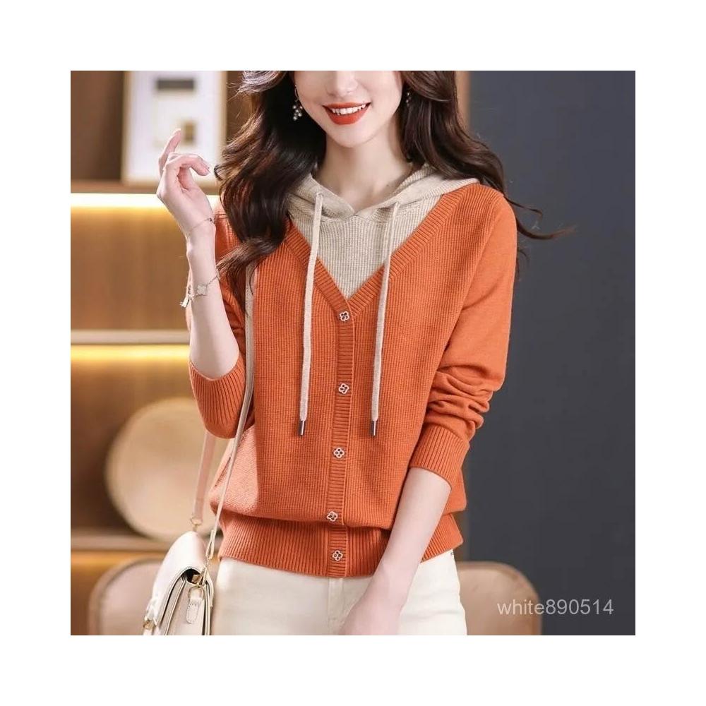 羊毛衫女連帽針織衫衛衣裝新款寬鬆打底衫假兩件外
