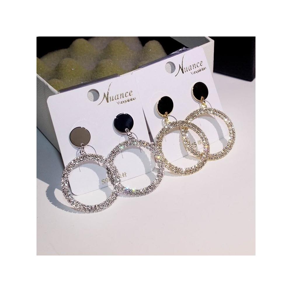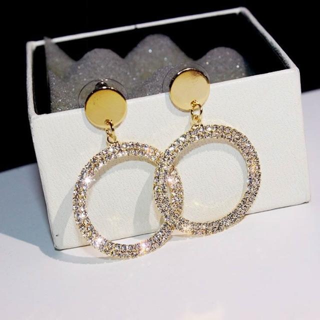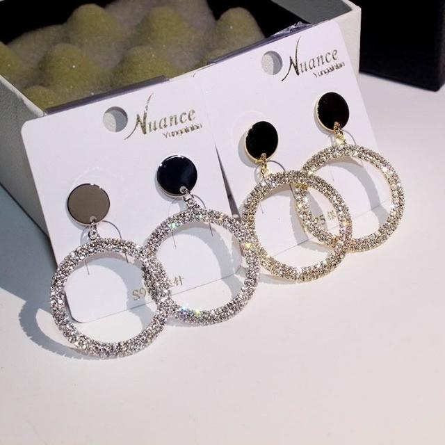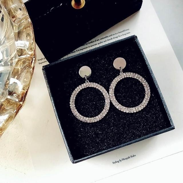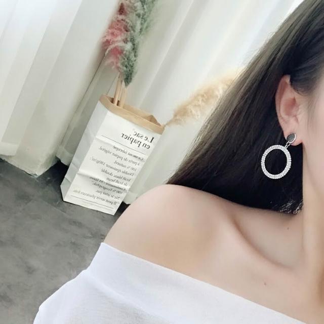 925銀耳針滿鑽大圓圈耳環耳墜氣質女耳釘韓國簡約百搭耳飾品-C401
