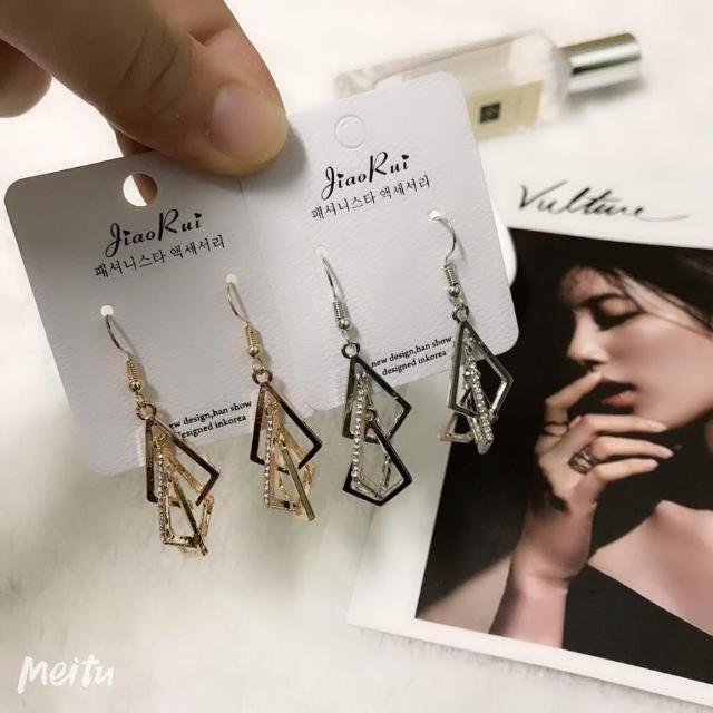 不規則幾何耳環飾品簡約氣質閃鑽耳墜時尚個性韓國百搭耳釘耳飾女-C363