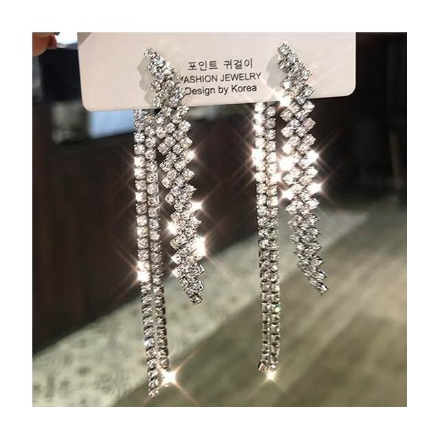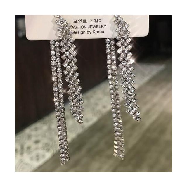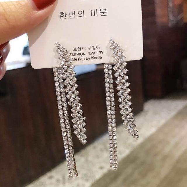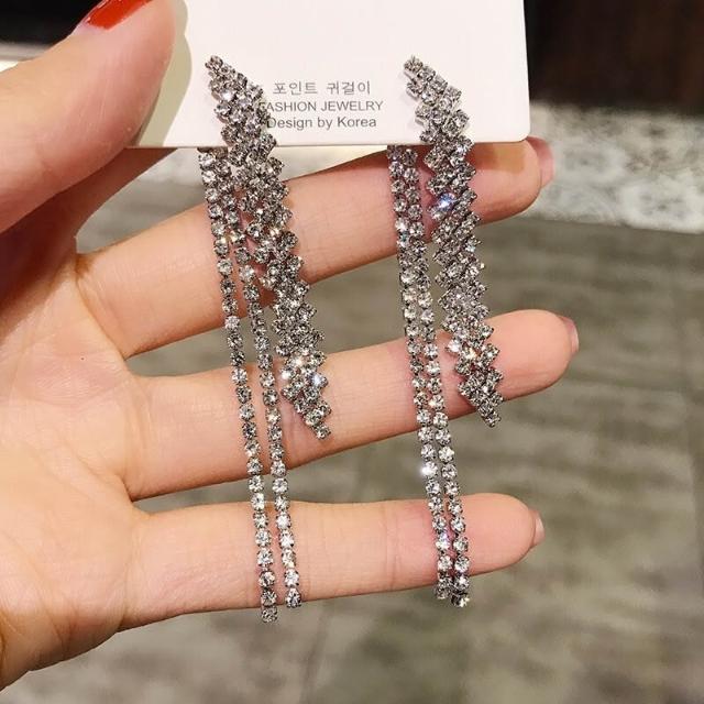 新款925銀針滿鑽鋯石流蘇長款耳環前後掛耳釘個性超仙耳飾-C359