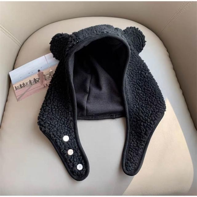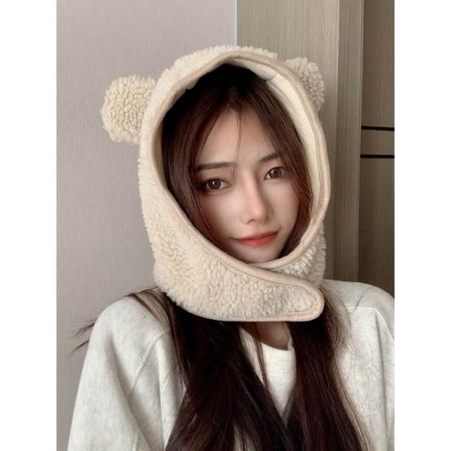 秋冬天仿羊羔保暖雙面戴包頭帽熊耳雷鋒帽 超可愛小熊耳朵飛行帽 熊熊頭套 小熊帽子 林佳辰同款 林佳辰 Ozone