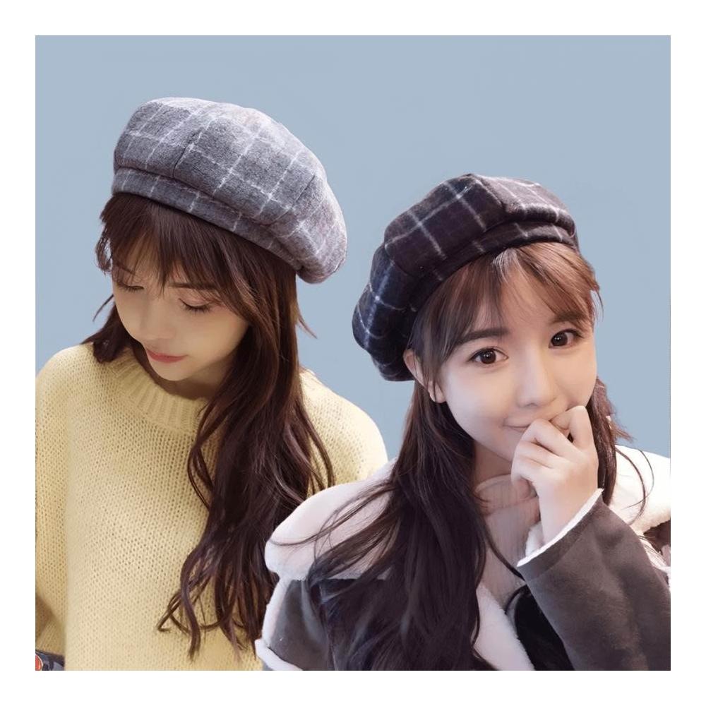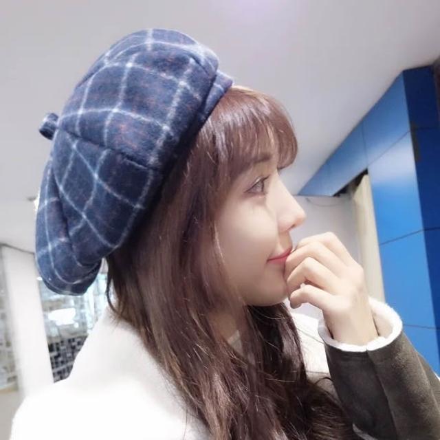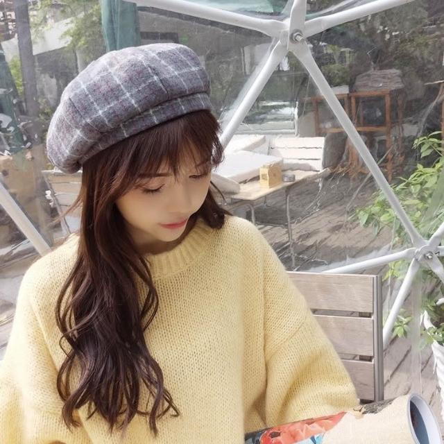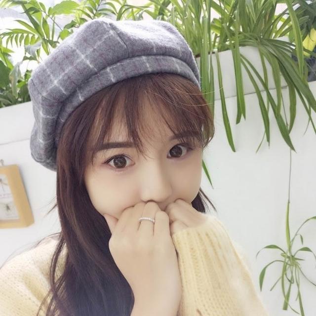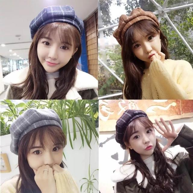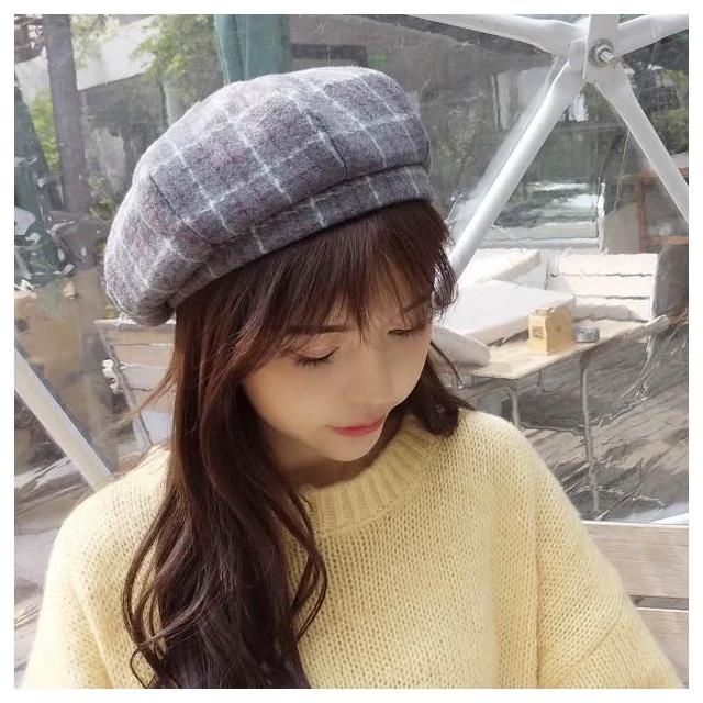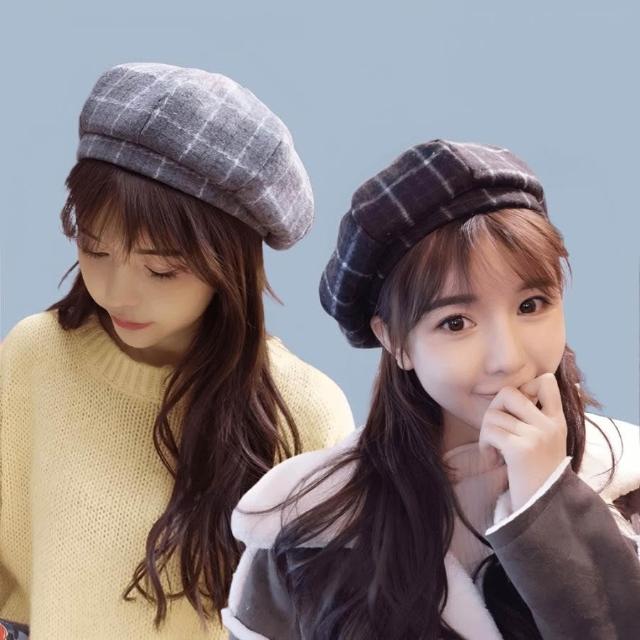 韓版潮女秋冬天毛呢復古英倫格子畫家帽蓓蕾貝雷帽報童八角帽子