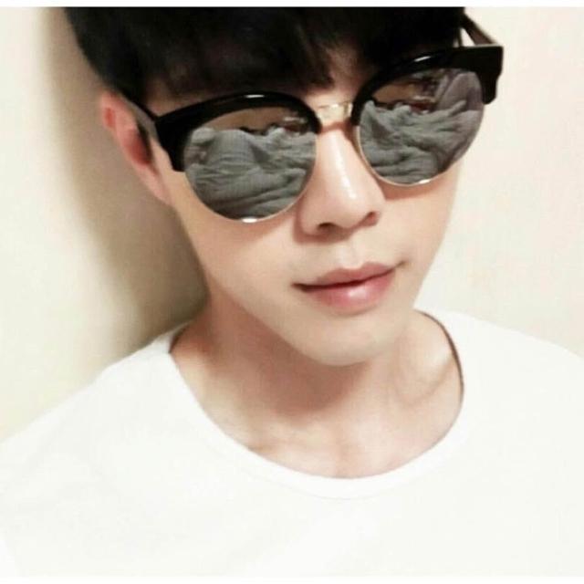 韓國帥氣歐美復古圓形框半框墨鏡太陽眼鏡金屬膠框反光半框鏡面炫彩黑色墨鏡男女流行墨鏡194
