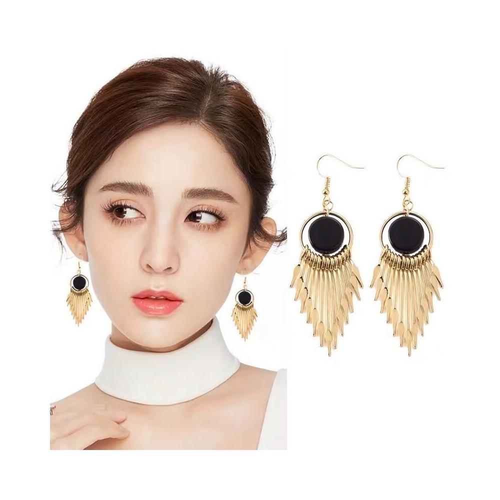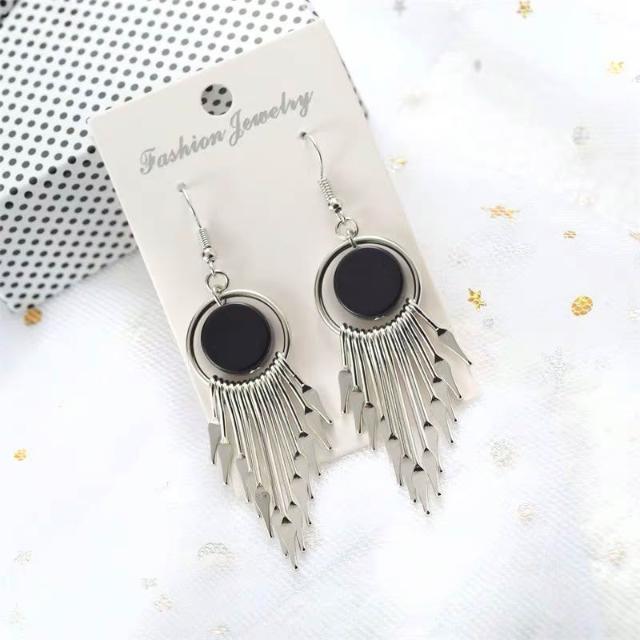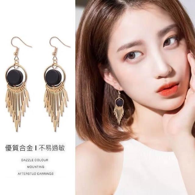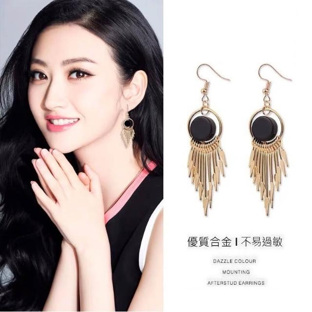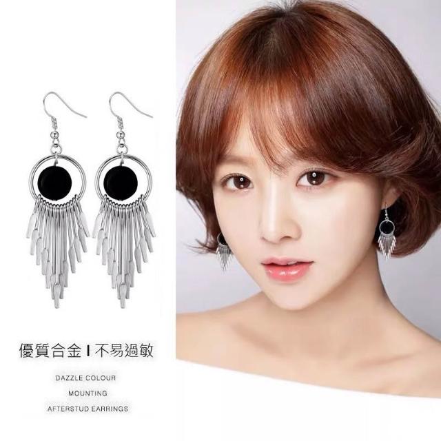 韓版流蘇幾何耳環氣質網紅長款圓形耳墜日韓優雅復古女神耳飾-C348