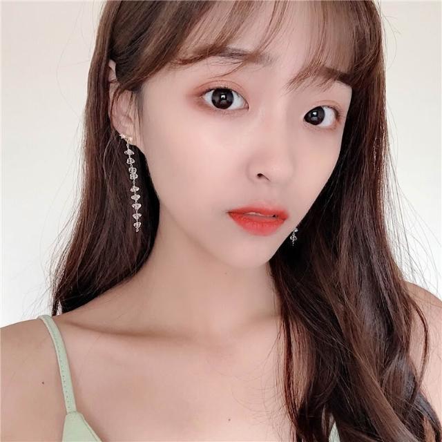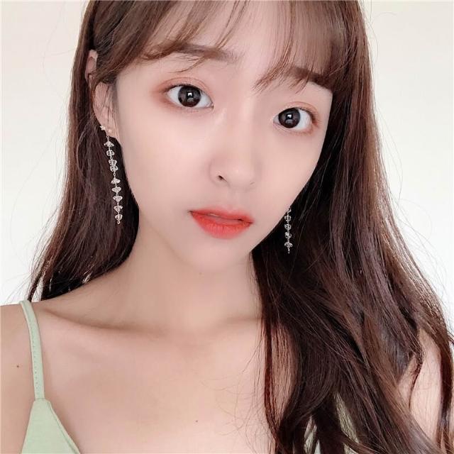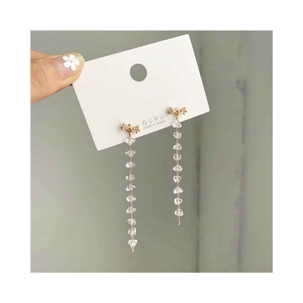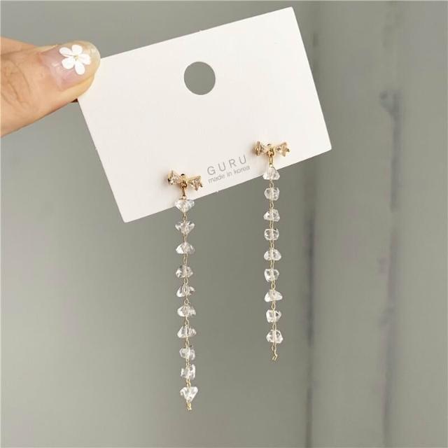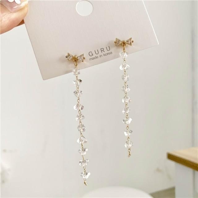 S925銀針韓國氣質簡約精美蝴蝶結耳釘長款高級感流蘇水晶耳環-C457