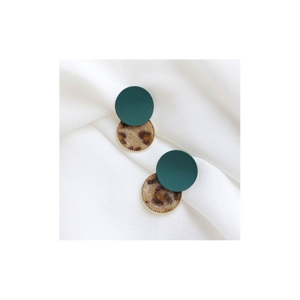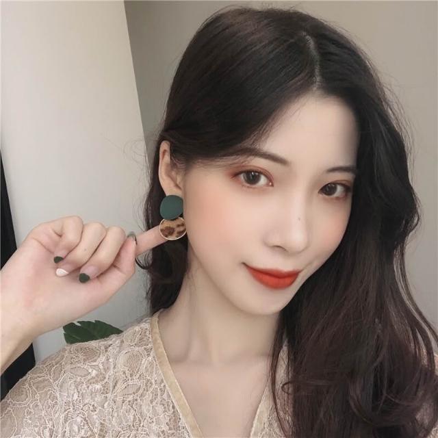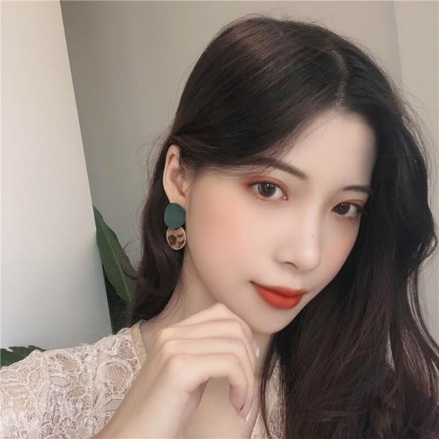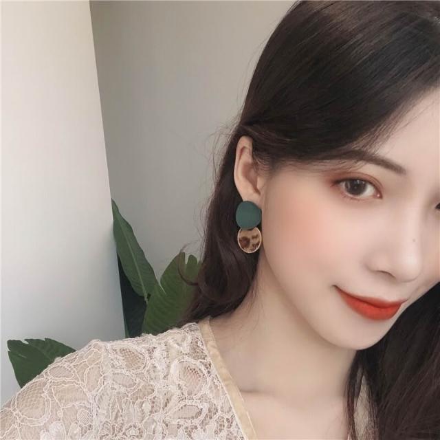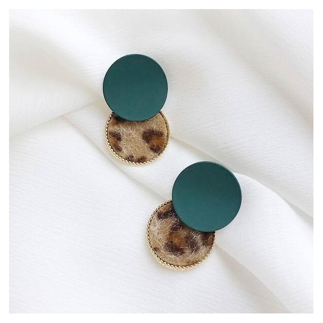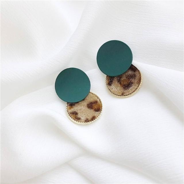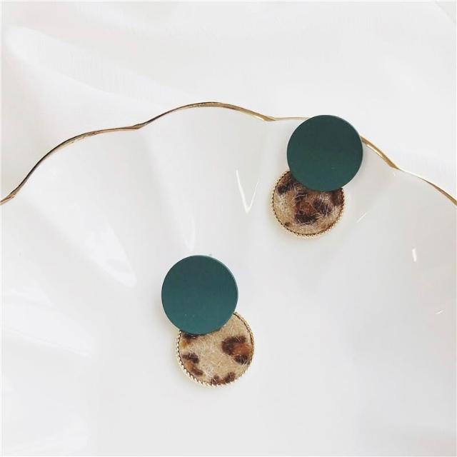 韓國個性少女豹紋耳環百搭撞色毛絨耳墜拼接磨砂圓圈幾何耳釘-C530