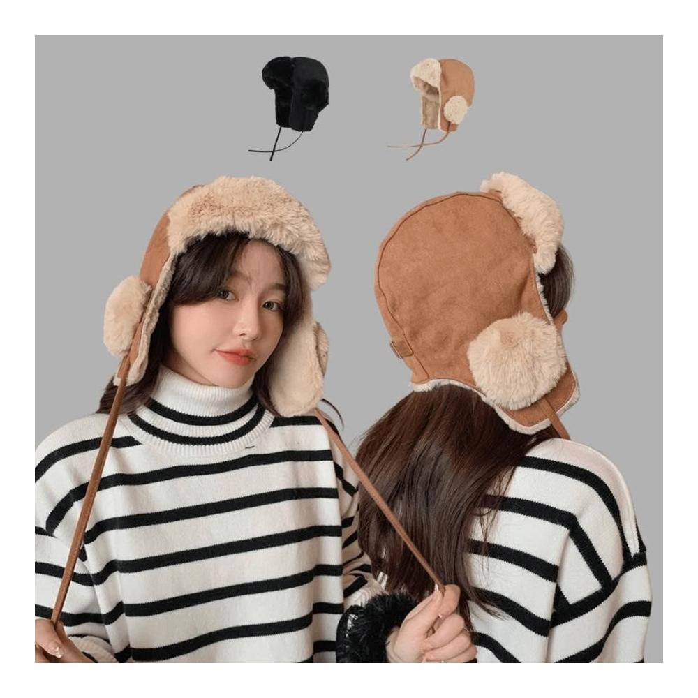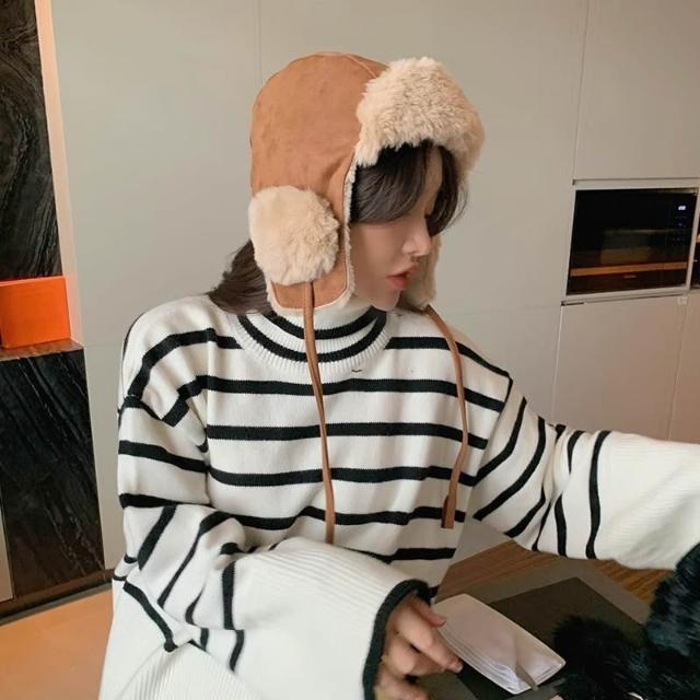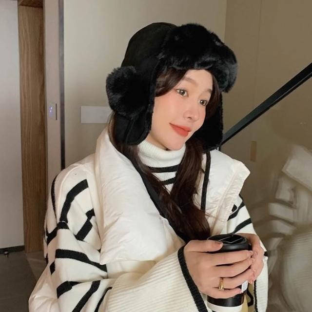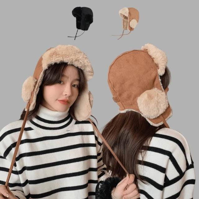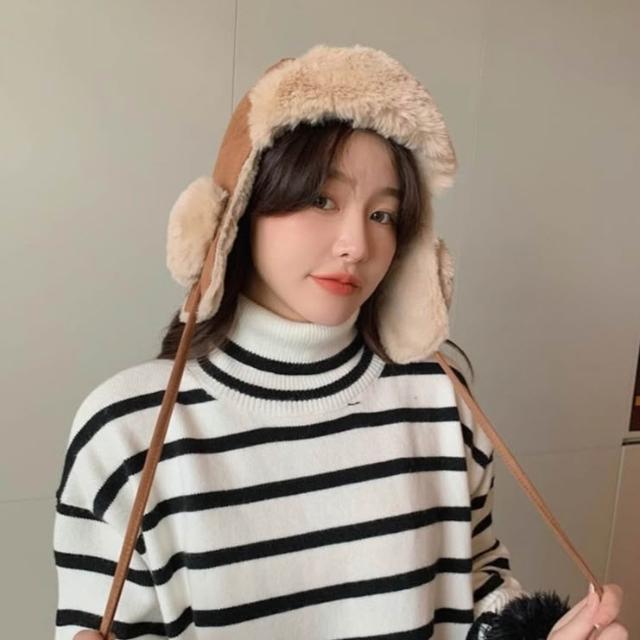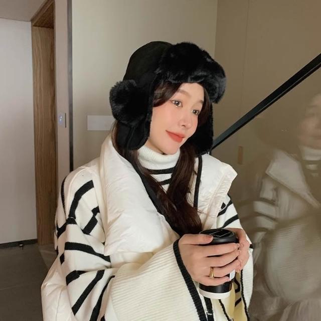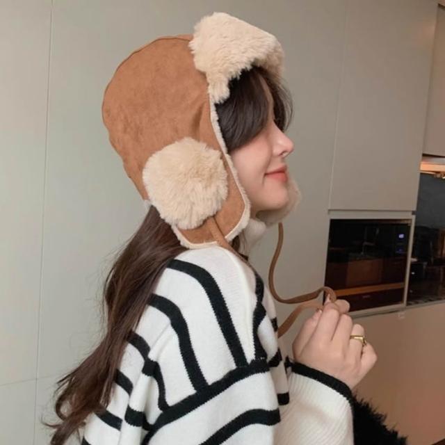 麂皮絨雷鋒帽女冬季騎車防風防寒護耳加厚加絨可愛保暖東北帽潮