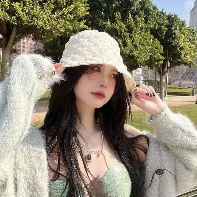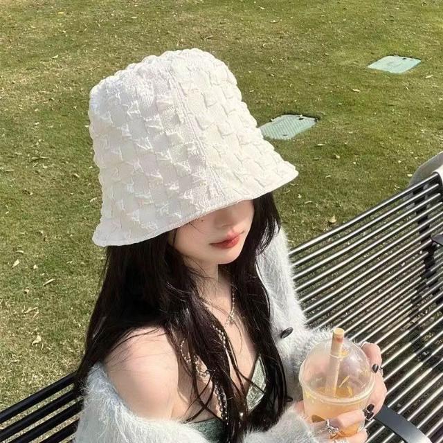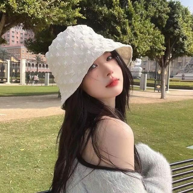 春夏薄款白色漁夫帽女韓版百搭遮陽ins水桶帽素顏遮臉顯臉小帽 #1