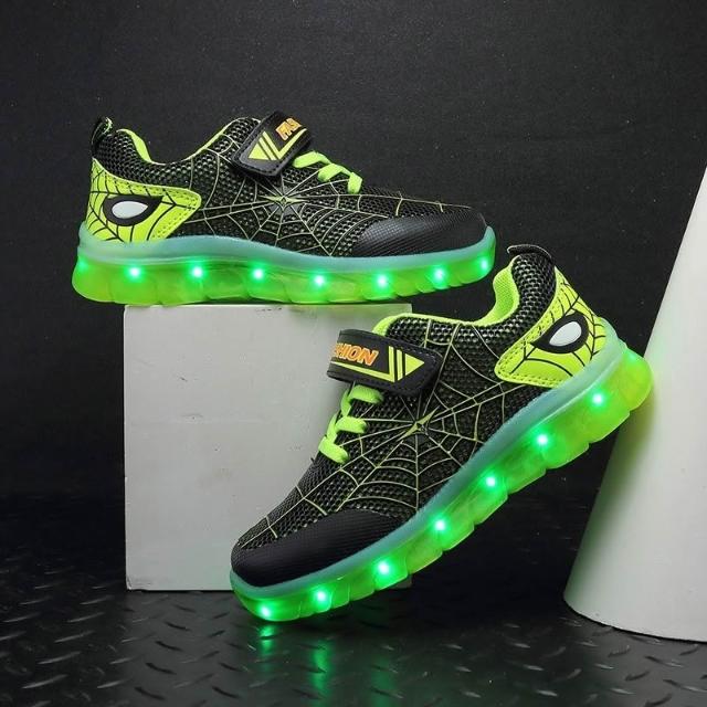 買到賺到兒童發光鞋 USB充電LED燈鞋 蜘蛛款 跑馬燈童鞋
