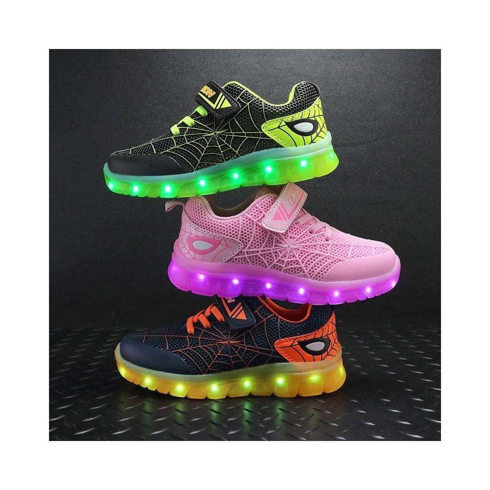 買到賺到兒童發光鞋 USB充電LED燈鞋 蜘蛛款 跑馬燈童鞋