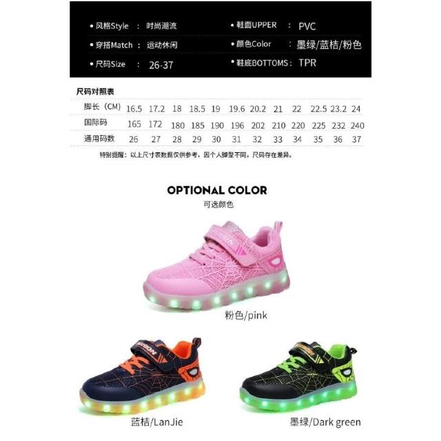 🔥超炫🔥兒童發光鞋 LED燈鞋 男童蜘蛛女閃燈鞋 鬼步鞋 亮燈運