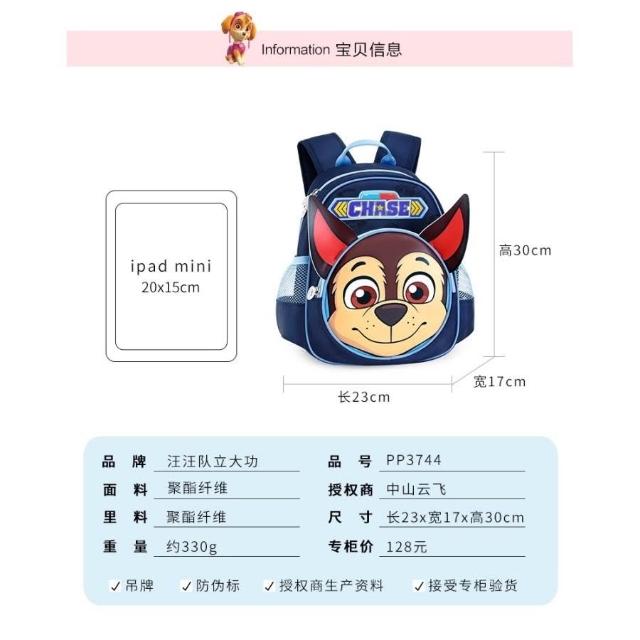 特惠 汪汪隊書包 幼兒園雙肩包 男童女童1-3小孩卡通寶寶