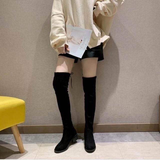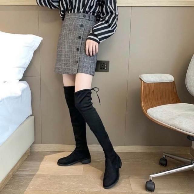 13 3cm 特價 皮革 麂皮 綁帶 平底 過膝靴 膝上靴