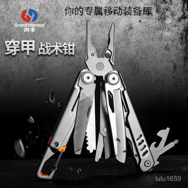 鴻豐穿甲不銹鋼多功能鉗戶外折疊尖嘴鉗露營救援EDC組閤工具刀鉗