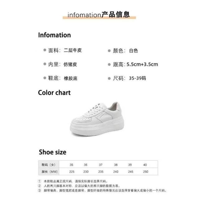 女鞋 韓版真皮小白鞋隱形內增高9cm女鞋 厚底增高鞋 白