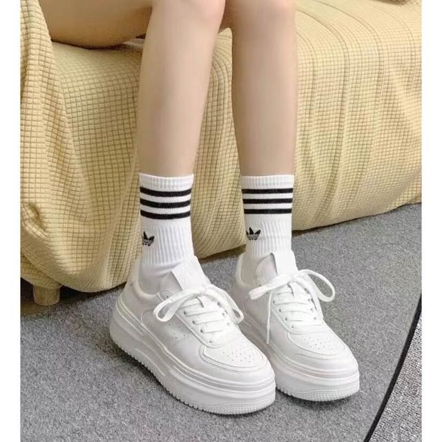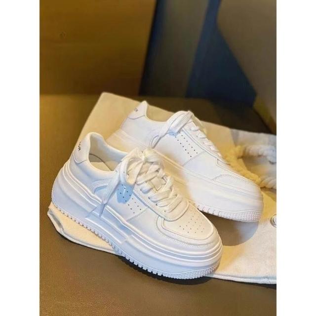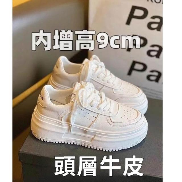 女鞋 韓版真皮小白鞋隱形內增高9cm女鞋 厚底增高鞋 白