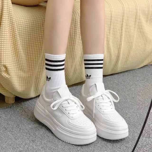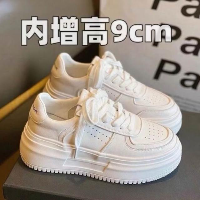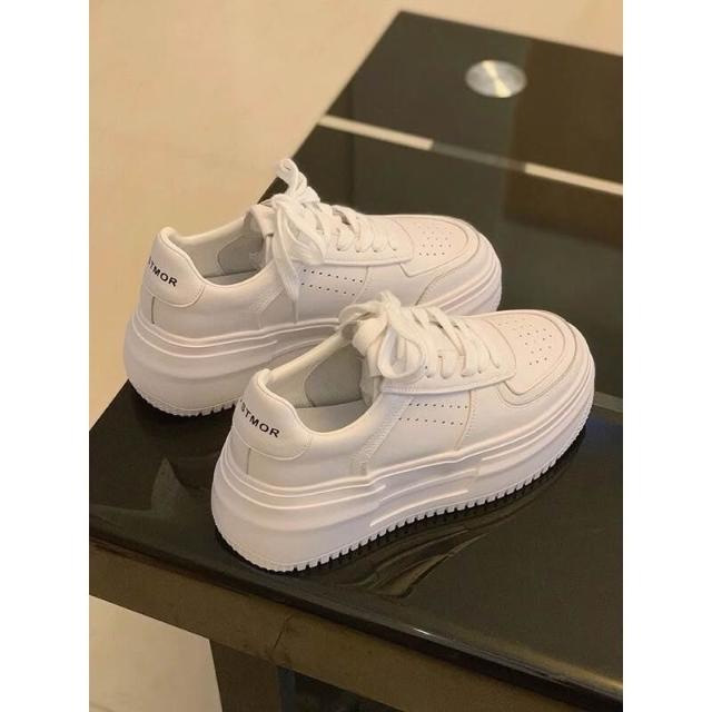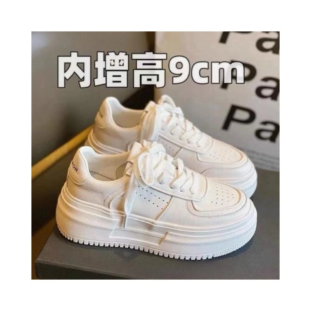 女鞋 韓系新款~真皮厚底小白鞋女|內增高9cm休閒鞋|