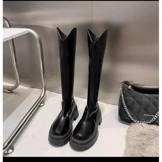 女鞋 厚底V口長靴白色中筒馬丁靴 高筒靴 長筒靴 騎
