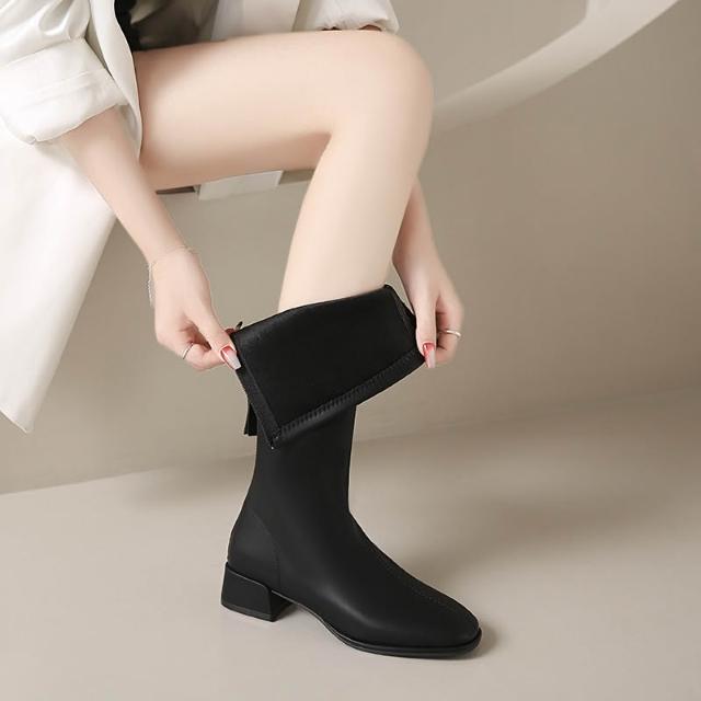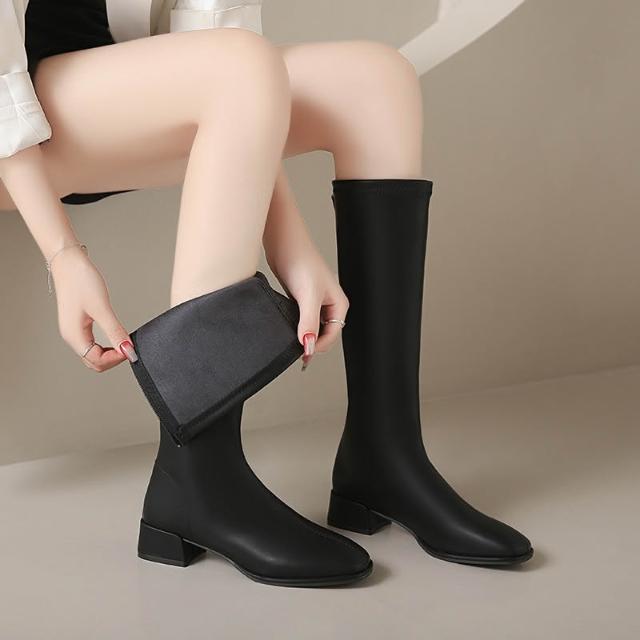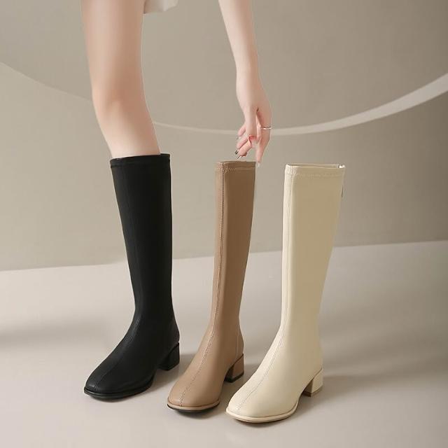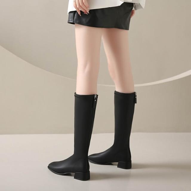 女鞋 長靴 長筒靴 34-43大尺碼長筒靴 粗跟長靴 時尚百