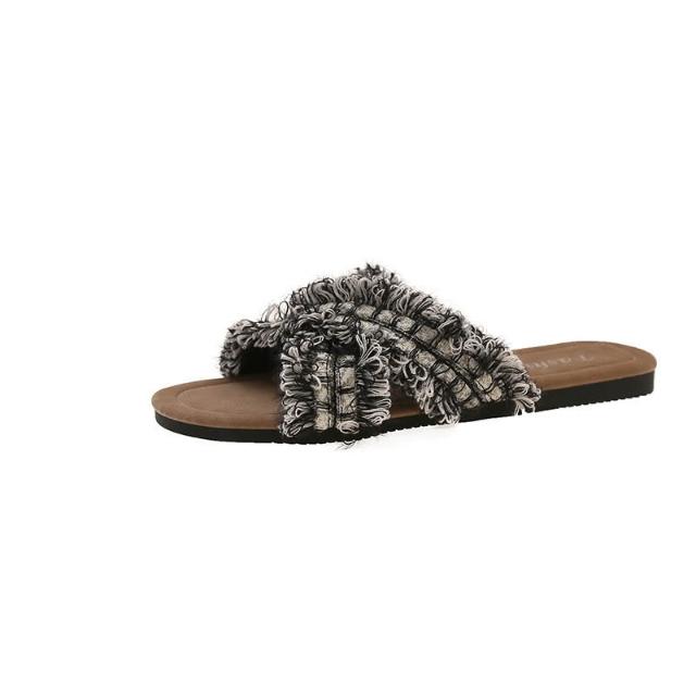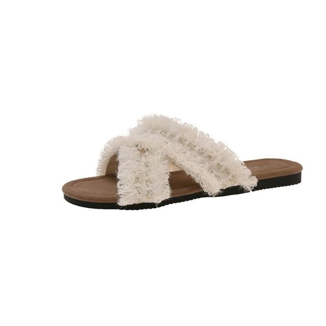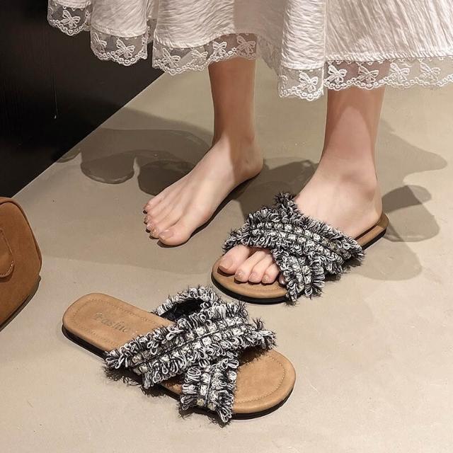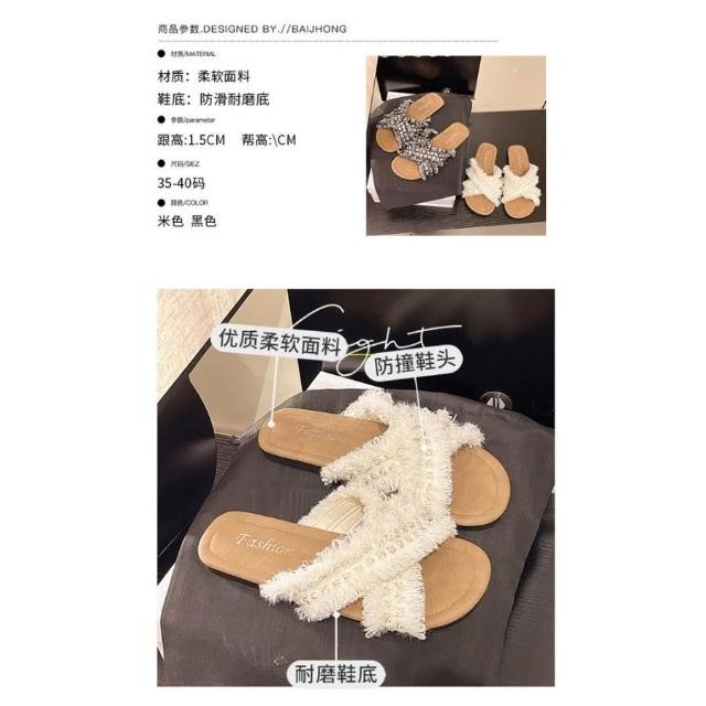 實拍 女鞋 休閒鞋 拖鞋 平底涼拖鞋 一字拖 法式小香風