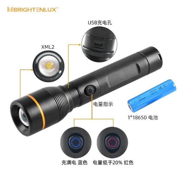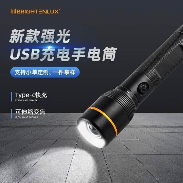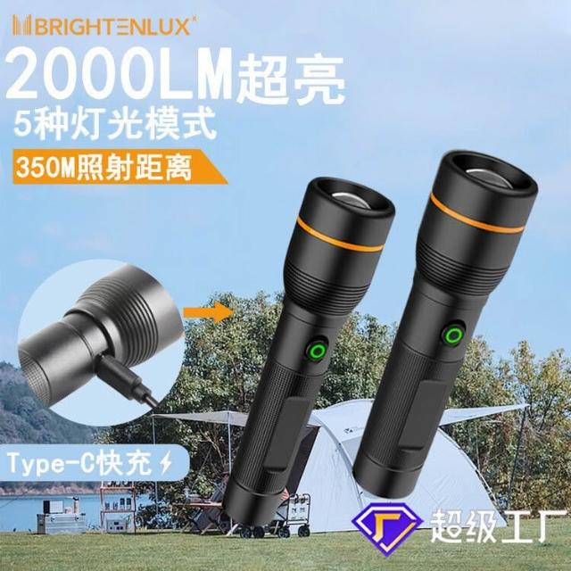可開發票 戶外應急IPX4防水變焦強光手電筒Type-c充電便捷超亮