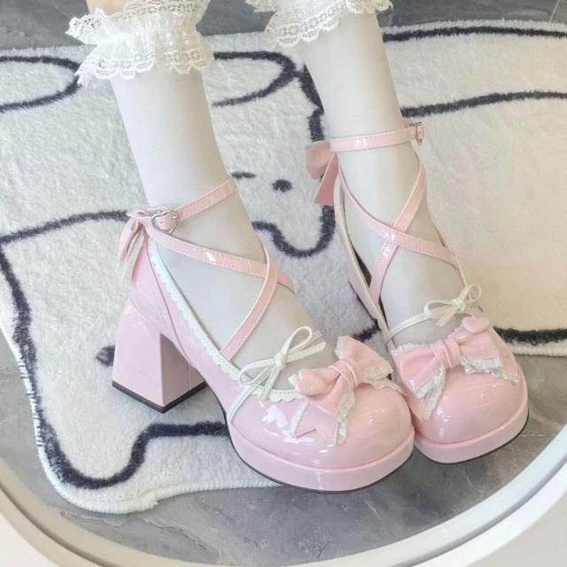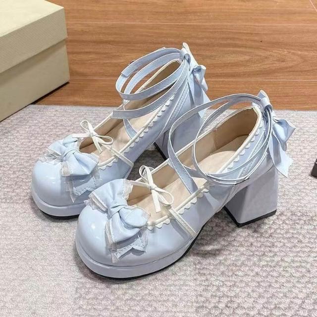 女鞋 實拍 上新洛麗塔粗跟防水臺鞋可愛瑪麗珍高跟鞋綁帶