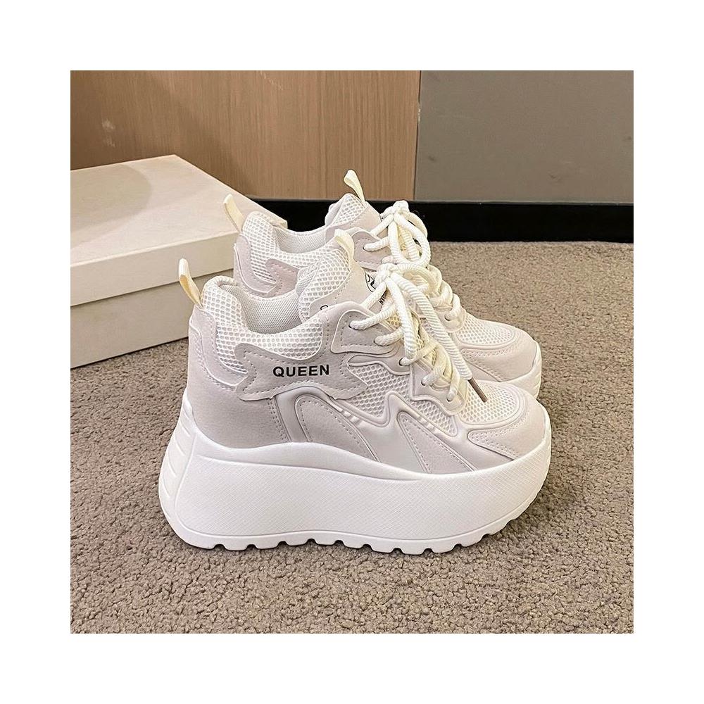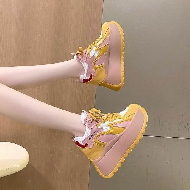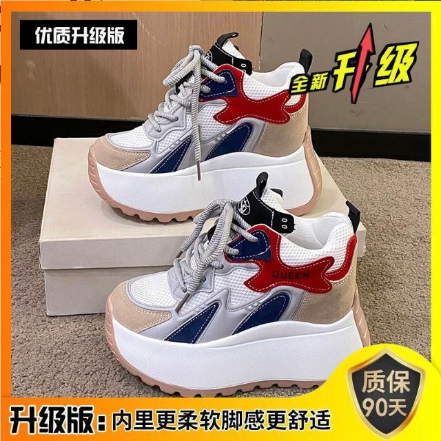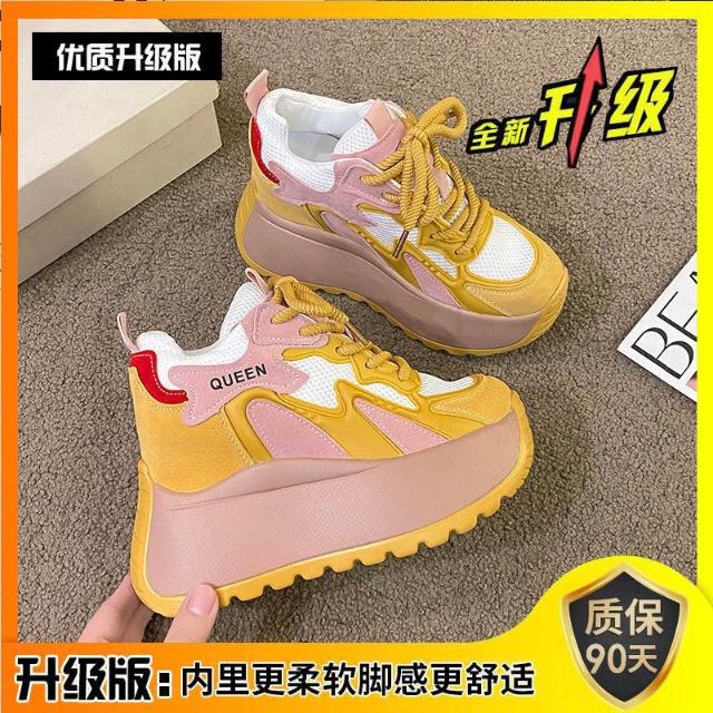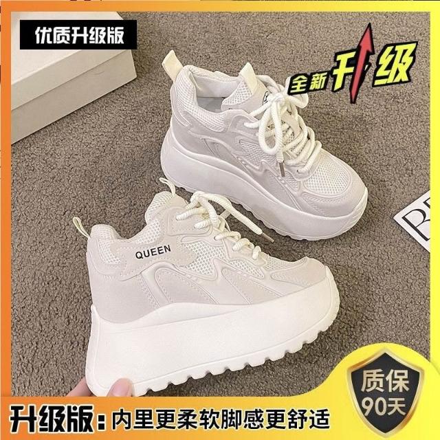 女鞋新厚底鬆糕小個子女鞋內增高-矮子樂透氣網面老爹