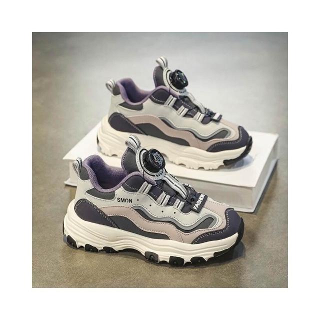春秋季 女童運動鞋 鈕扣鞋 運動鞋 兒童旋轉鈕扣輕便耐磨老爹鞋 兒
