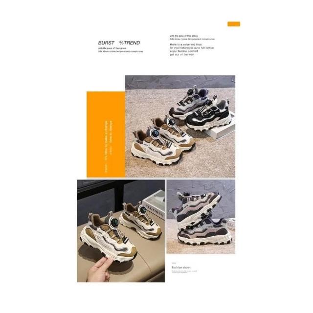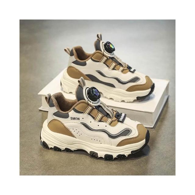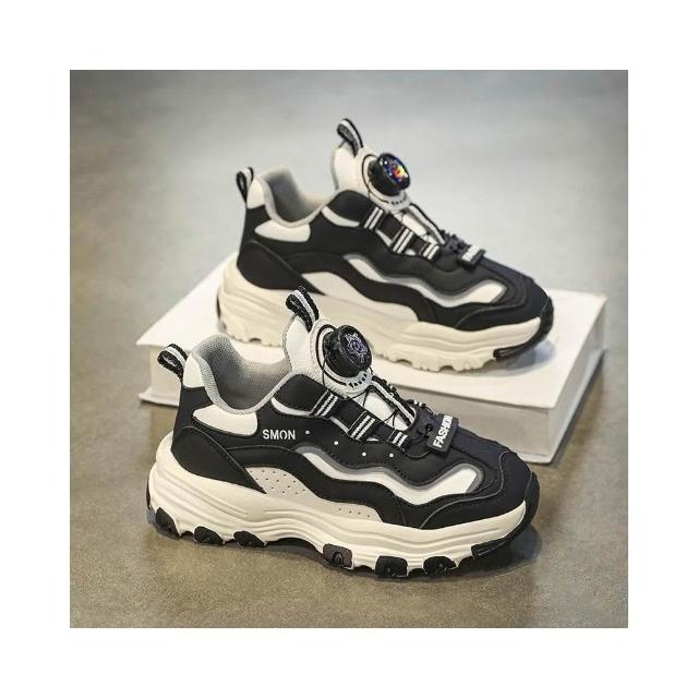 春秋季 女童運動鞋 鈕扣鞋 運動鞋 兒童旋轉鈕扣輕便耐磨老爹鞋 兒