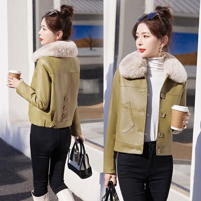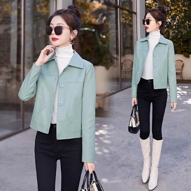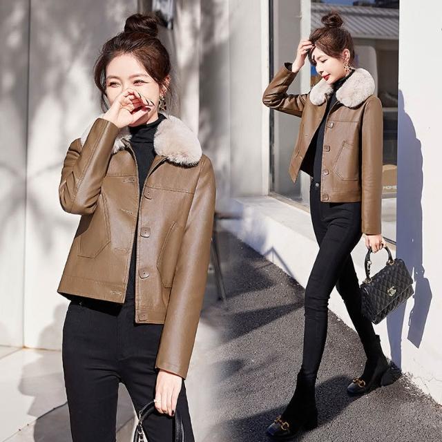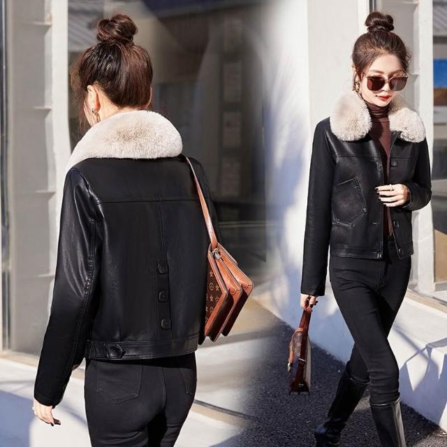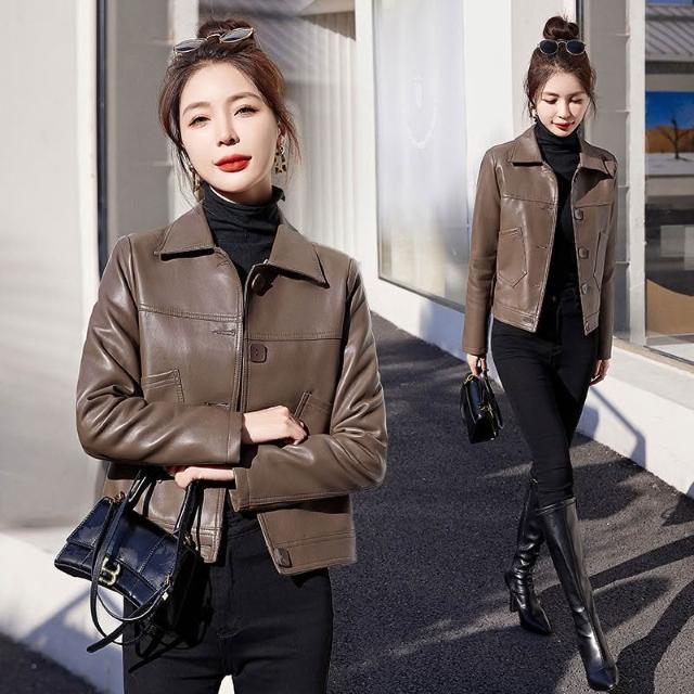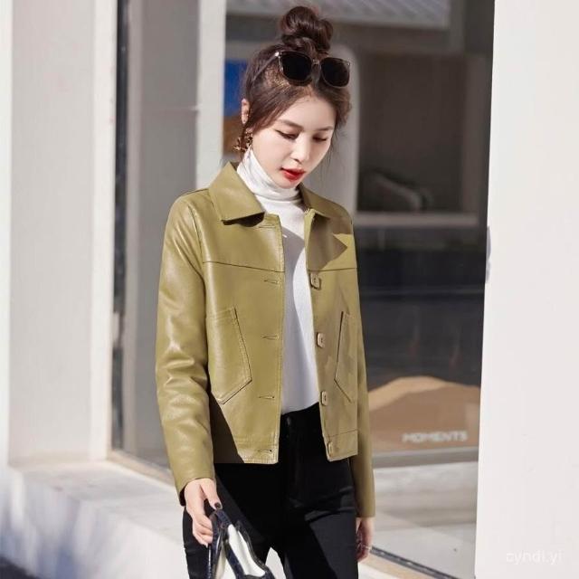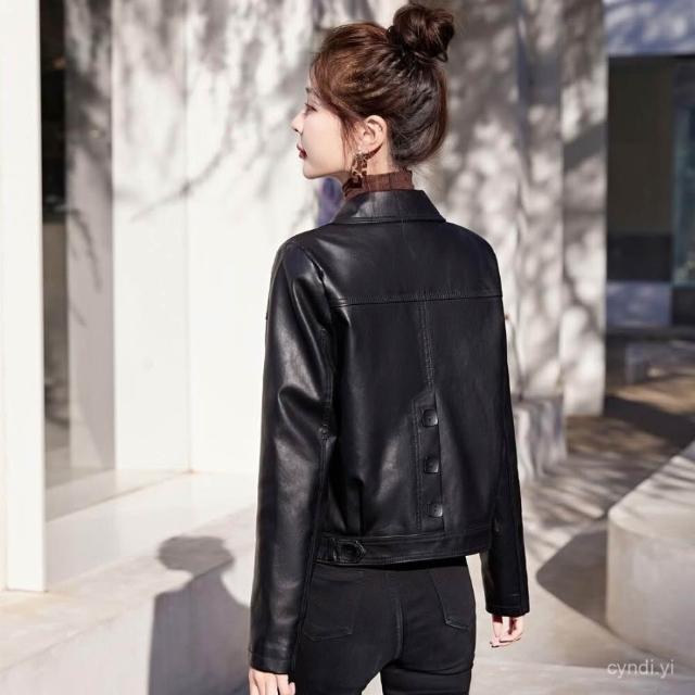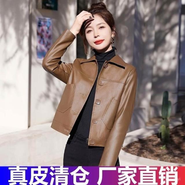 海寧皮衣女真皮短版2024年新款高端綿羊皮翻領修身顯瘦氣質皮夾剋 韓版 刷毛 皮外套女生 皮衣外套0101 JHLN
