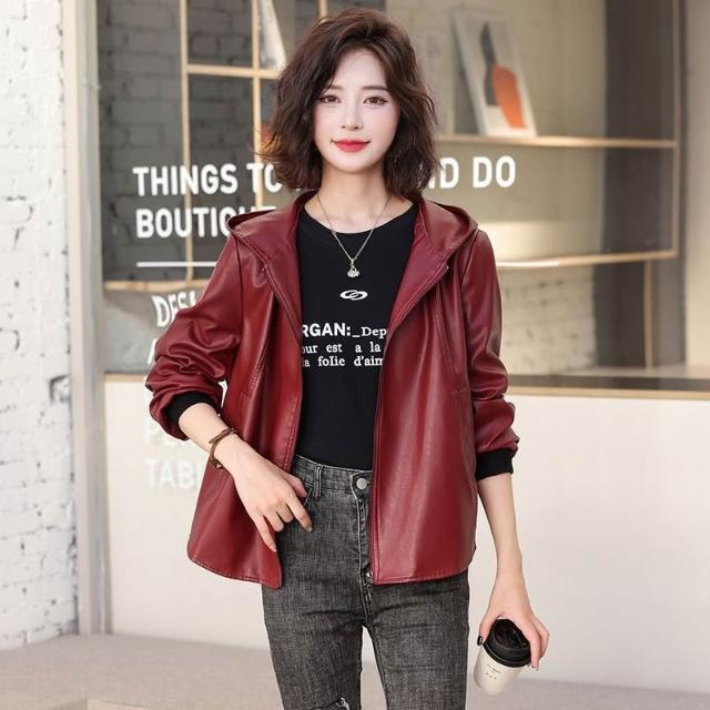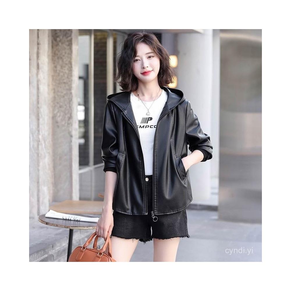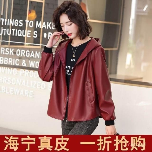 設計感真皮皮衣短版女寬鬆連帽韓版休閒海寧顯瘦洋氣綿羊皮外套新 韓版 刷毛 皮外套女生 皮衣外套0101 P5HO