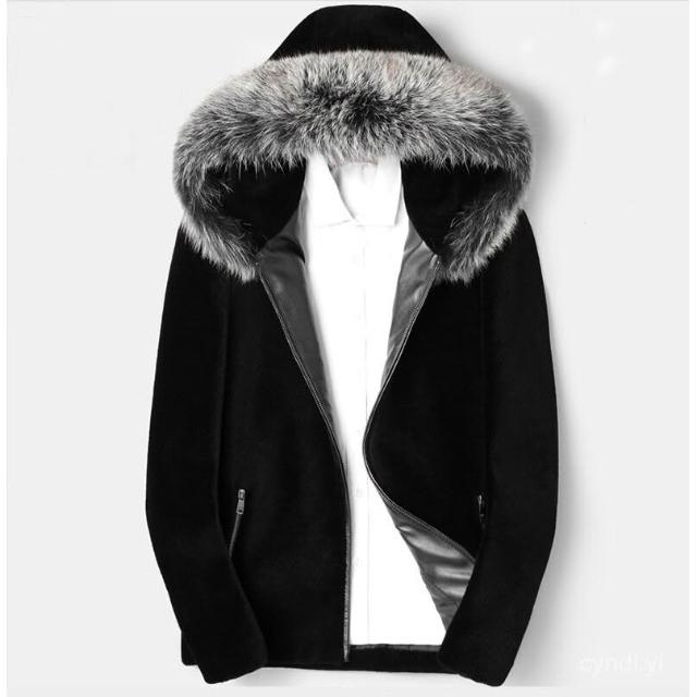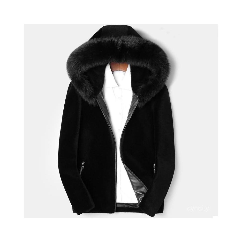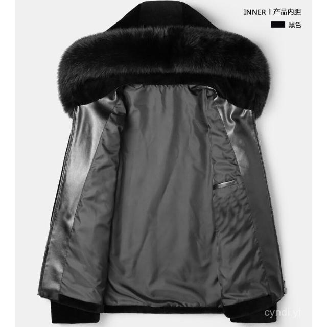 冬季新款黑色貂皮男是仿皮草皮毛一體加厚大衣狐貍毛領水貂絨外套 皮草外套女 毛毛外套 貂皮大衣 貂毛外套1206 R25G