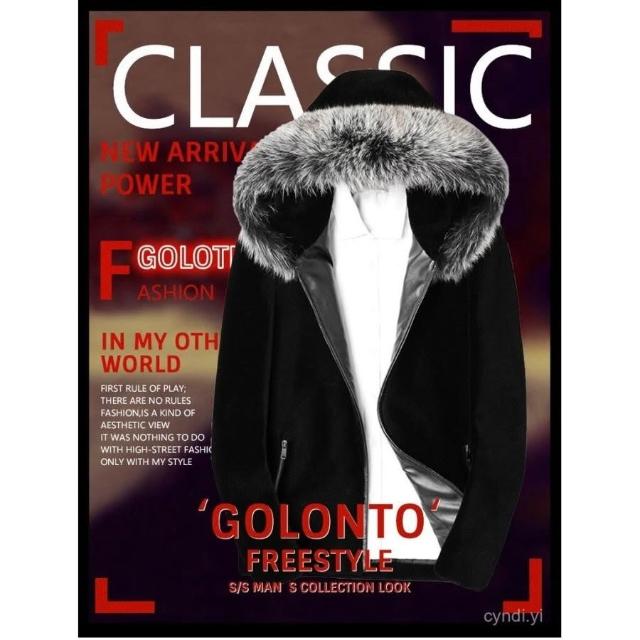 冬季新款黑色貂皮男是仿皮草皮毛一體加厚大衣狐貍毛領水貂絨外套 皮草外套女 毛毛外套 貂皮大衣 貂毛外套1206 R25G