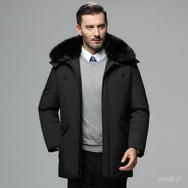 大尺碼冬天外套 冬季新款羽絨服男中長版毛領大衣男中年男士加厚外套男爸爸商務裝 保暖 防風 羽絨外套連帽1114 34FV