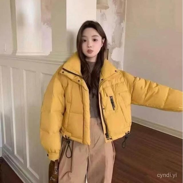 立領羽絨服女 50絨羽絨服 25冬季新款 簡約時尚立領短版麵包服加厚保暖外套女 中長款 爆款外套1013